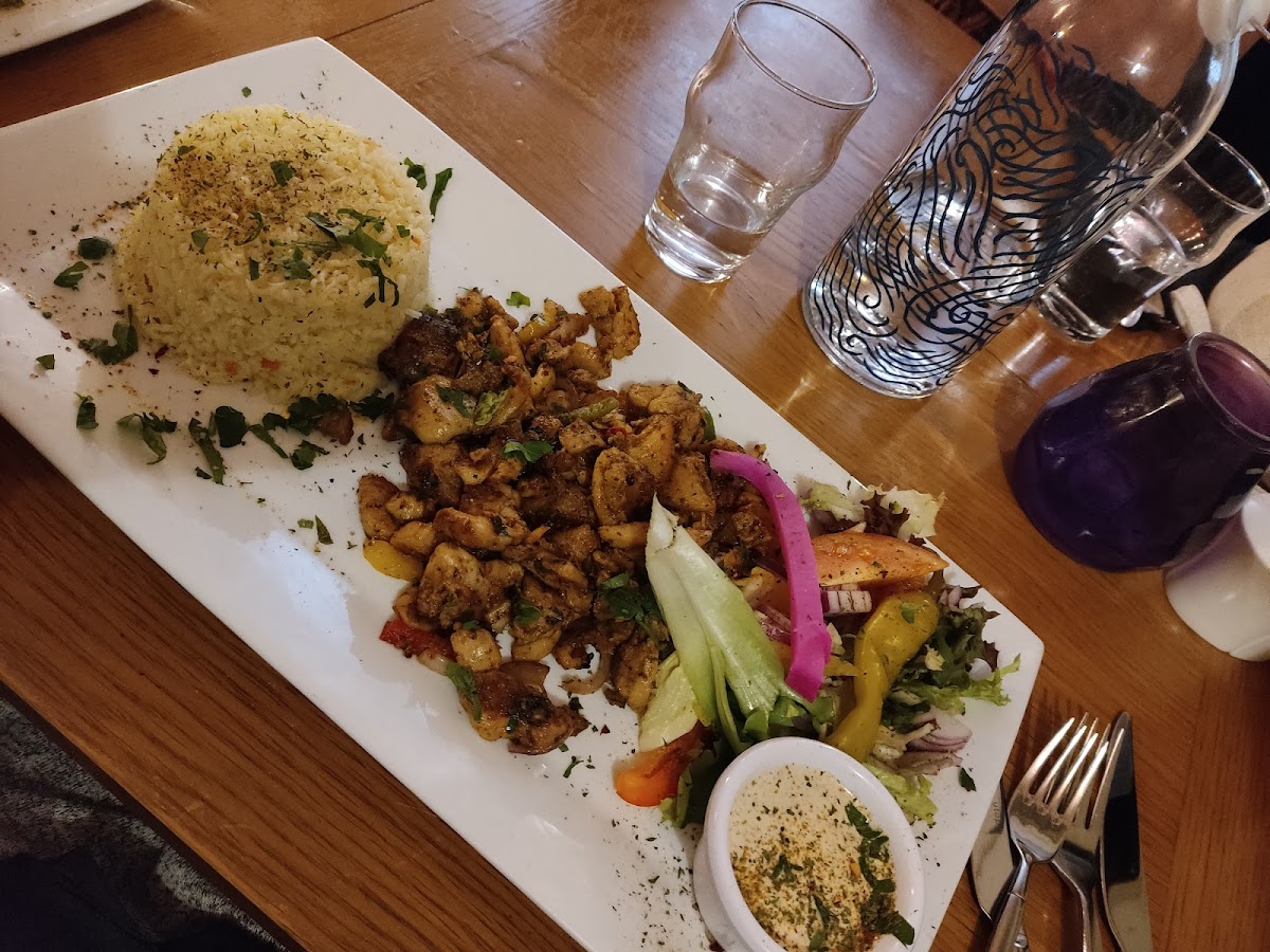 Been going here for years, the flavour and food has stayed the same. I feel this is quite rare with restaurants so I’m pleased to still know the rice will be fluffy, buttery and flavourful. The flat bread and the garlic sauce and harissa sauce is amazing. Simple but super flavourful dishes. The shawarma was a little overcooked and not as flavourful as starters but it was still ok. Plenty of veggie options. The moussaka my friend got was amazing I’d probably get a different main now.
